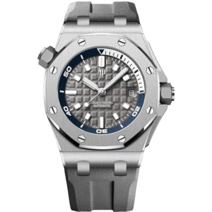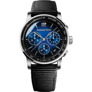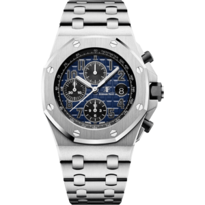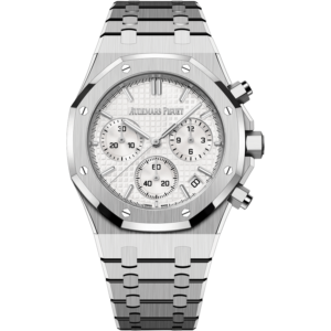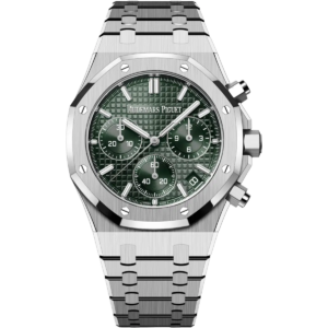 This 41 mm stainless steel Chronograph adorns a silver-toned “Grande Tapisserie” dial which nicely complements the watch’s slenderer aesthetic bestowed by the new Royal Oak design evolution. It is also fitted with the “50-years” oscillating weight.