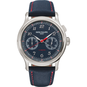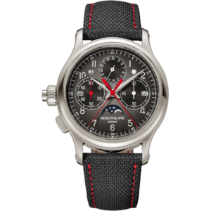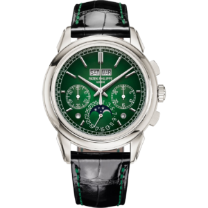 Patek Philippe Grand Complications Chronograph Perpetual Calendar 41mm 5270P-014 Reference 5270, launched in 2011, is heir to several generations of Patek Philippe perpetual calendar chronographs. The Manufacture reinterprets this timepiece in a model featuring an iconic yet original style. The radiance of platinum — the most precious metal of all yet also the hardest to work with — magnifies the timeless design of the case, with its concave bezel, its elegant two-tier lugs and its correction push-pieces that are satin-brushed on the flanks and polished on top. The perpetual calendar displays are harmoniously arranged, with the date indicated by a hand and a moon phase at 6 o’clock, as well as a twin day/month aperture at 12 o’clock, complemented by two round apertures for the day/night indication and the leap-year cycle. Caliber CH 29-535 PS Q is distinguished by its traditional architecture, combined with six patented innovations relating to the chronograph, as well as by its exceptionally thin calendar mechanism.