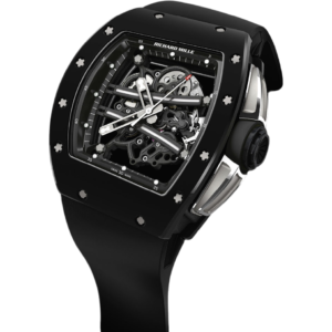 Richard Mille RM 61-01 Yohan Blake All Black Limited Edition The RM 61-01 Yohan Blake takes all of its cues from the RM 59-01 tourbillon designed for the Olympic medallist and 2nd fastest man over 100m and 200m. It incorporates the calibre RMUL2, whose highly skeletonised grade 5 titanium movement is treated with PVD and Titalyt® to provide maximum performance. Boasting a highly skeletonised calibre crafted of PVD-treated grade 5 titanium, The RM 61-01 ensures superlative performance thanks and impact resistance tested for impacts of over 5,000 g’s. Skeletonised manual winding movement with hours, minutes and seconds.