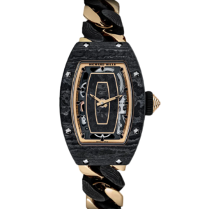 Richard Mille RM 07-01 RG-CA Automatic Openlink RG & Carbon TPT Bracelet The Richard Mille RM 07-01 RG-CA Automatic Openlink with a Rose Gold & Carbon TPT® Bracelet is a luxury women's watch that merges technical excellence with an elegant and contemporary design. The RM 07-01 RG-CA exemplifies Richard Mille's commitment to innovation through the use of advanced materials and attention to detail, providing a perfect blend of luxury, durability, and cutting-edge technology.