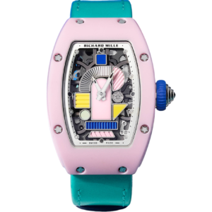 Richard Mille RM 07-01 Coloured Ceramic Pastel Pink Limited Edition The Richard Mille RM 07-01 Coloured Ceramics Pastel Pink Limited Edition is a distinctive timepiece inspired by the Memphis Design movement of the 1980s, known for its playful use of geometric shapes and bold colors. This watch is part of a trio that includes pastel lavender and pastel blue models. This collection emphasizes Richard Mille's ability to blend technical innovation with bold design choices, making it a standout piece for those looking for both performance and unique aesthetics.