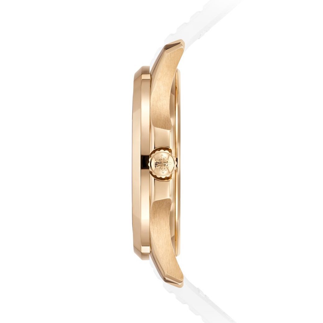 Patek Philippe highlights the elegant, bold design of its new Cubitus collection in a two-tone rose gold and steel version, with alternating polished and vertical satin-brushed finishes.