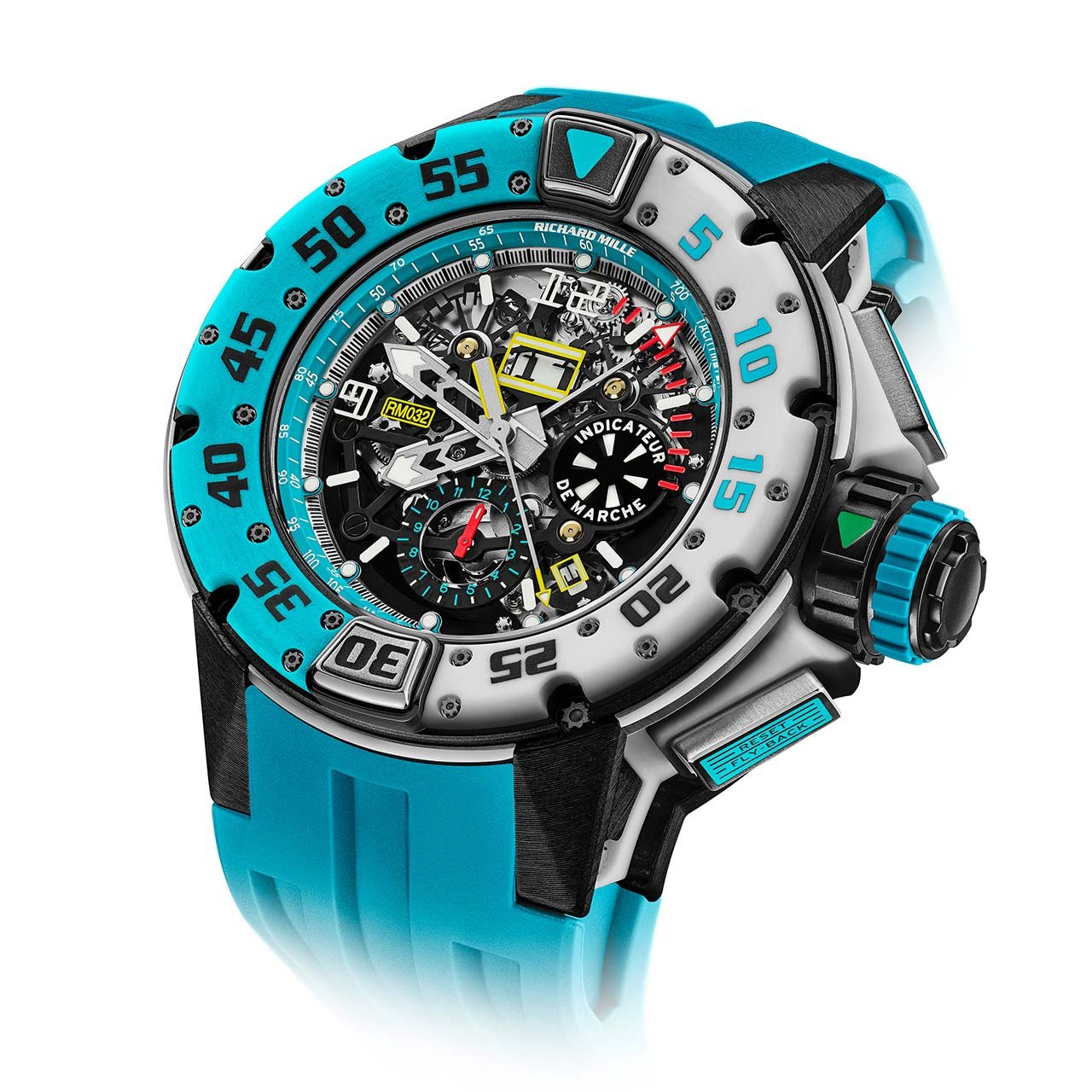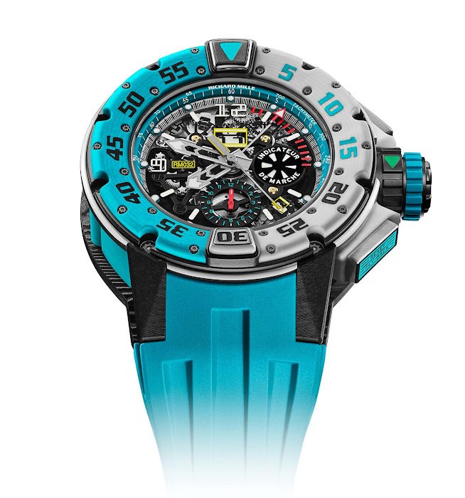 On this special occasion, Richard Mille, one of the main sponsors of the event since 2010, is unveiling the RM 032 Les Voiles de St Barth, a highly technical creation that can withstand a pressure of of 30 bar (approximately 300 metres / 1,000 feet) in accordance with the ISO 6425 standard for diving watches.